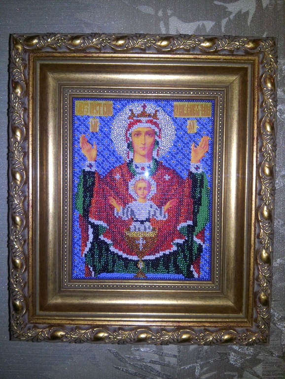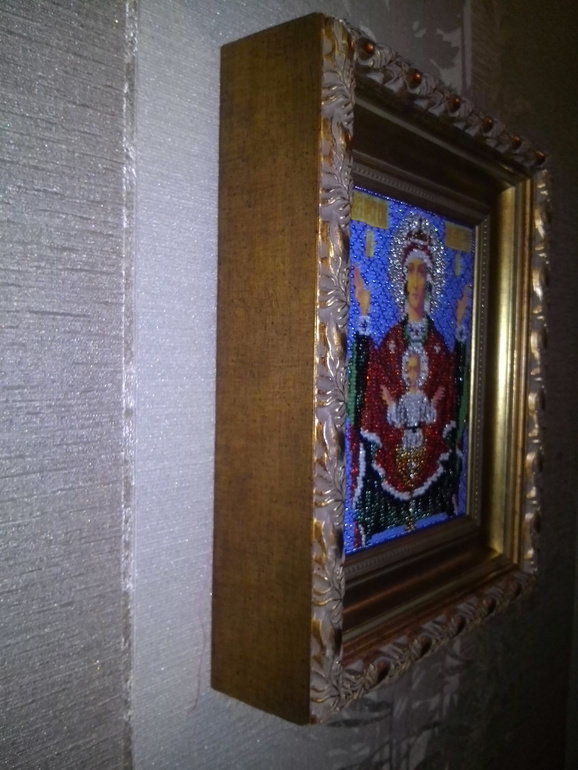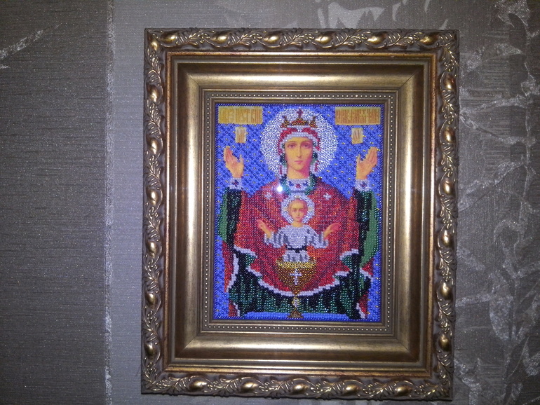 Вышивка картин. Крестиком, гладью, бисером, стразами, лентами, схемы по вышивкам, процессыВот такую икону вышила в подарок брату. Есть за ним такой грешок. Оформлено двойной деревянной рамой стекло анти блик. Получилось очень хорошо. Сразу прошу прощения за фото с телефона поэтому оставляет желать лучшего ,да и фотограф я так себе.