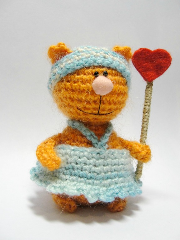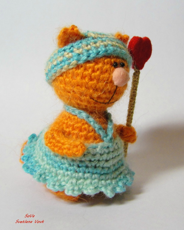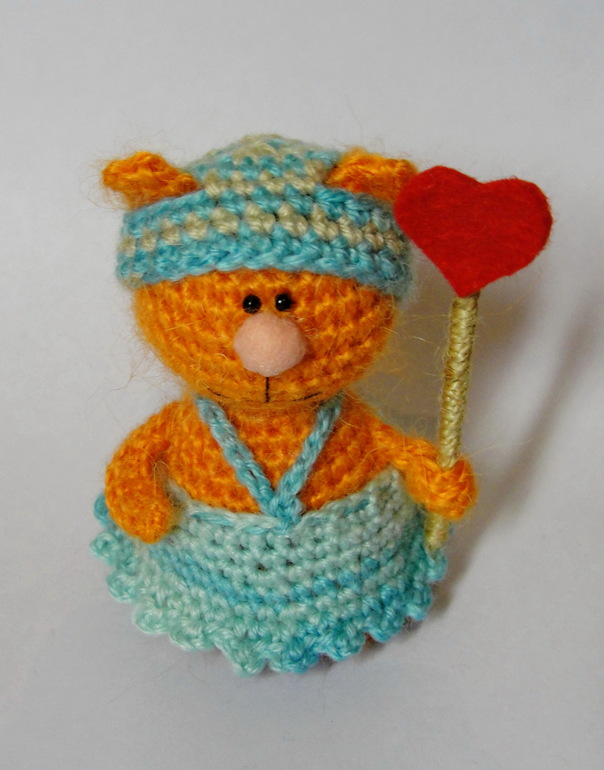 В лапках кошечка держит волшебную палочку с фетровым сердечком в знак любви и мира, который она приносит в дом.