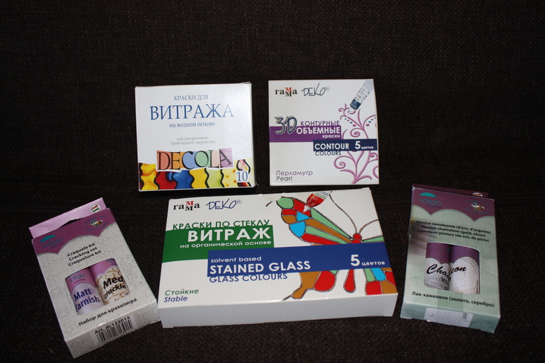 Обмены подарками, материалами для рукоделия (хвастики)Как-то хотела попробовать сделать что-то в витражном стиле, но так руки и не дошли. Так же покупала набор для кракелюра и какой-то лак. Все лежит давно и АБСОЛЮТНО НОВОЕ. Но сроки годности уже закончились, кроме лака (он годен до 2018 года). Под КАТом более 5 фото со сроками для каждой коробочки: