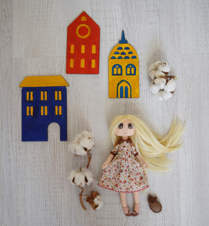 Знакомьтесь, девочки, у меня появилась на свет кареглазая блондинка. Рост 23см. Стоит на подставке, не сидит. Одежда не снимается.