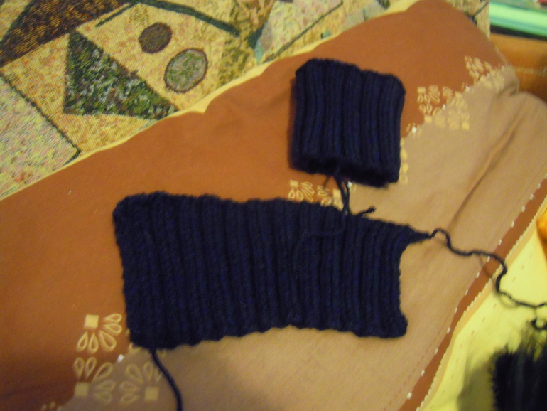 Купила в тон пряжу и связала 2 прямоугольника. Померяла обхват запястья и пару см прибавила. Рисунок: резинка 1х1