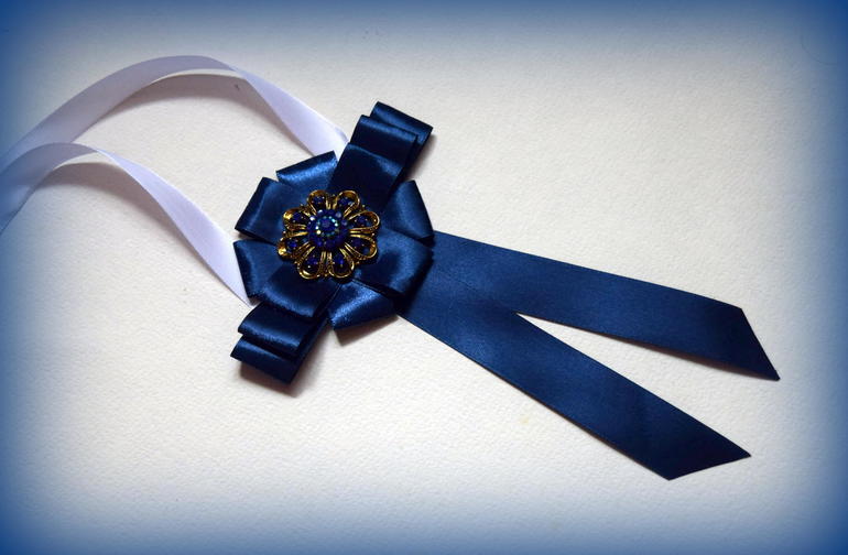 Цветы из ткани и форма. Канзаши. Украшения для волос.Еще один нарядный галстук под темно-синюю форму