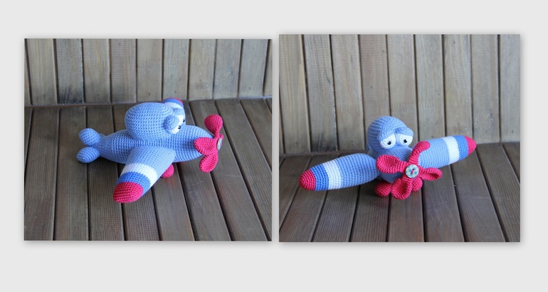 И еще сюрприз сыну: вязаный самолетик с задумчивой мордочкой