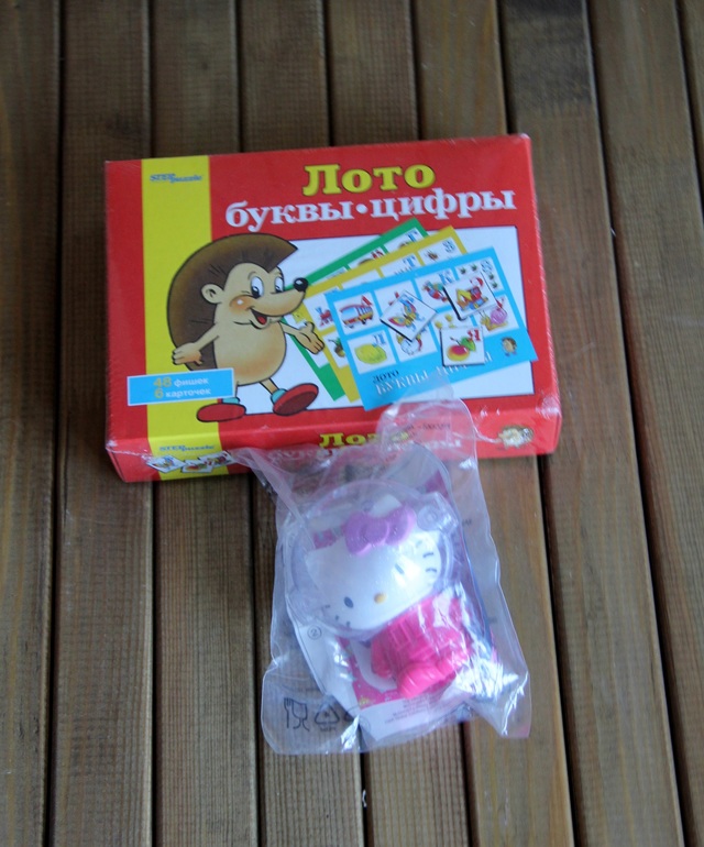 А эти игрушки (лото и Китти-космонавта) уже сегодня отдала им, очень весело поиграли. Буквы находили, складывали, а Китти оказалась заводная и жужжит.
