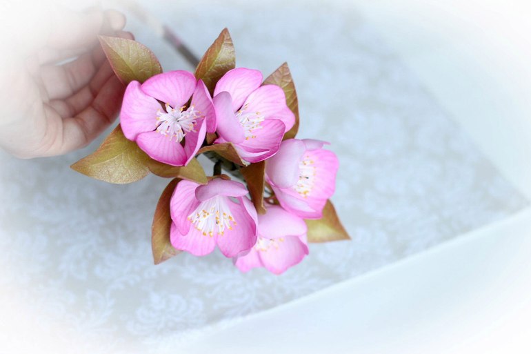 Как живые! А простите, может за глупый вопрос, а как Вы делаете розовые листики? У мен есть ножницы для листиков, но они несколько другие, и чем подкрашиваете фом? порошком или рисуете пастелью?