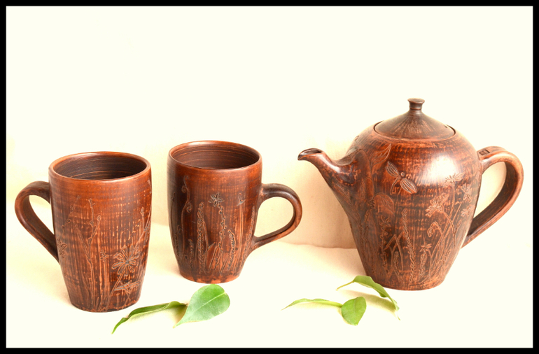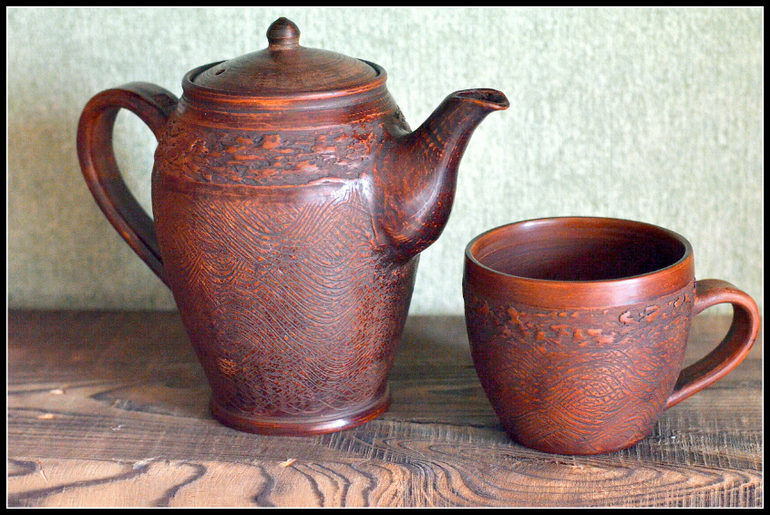 Чайники муж на гончарном круге делает))) - это он мастер, а я занимаюсь ручной лепкой и декором)))