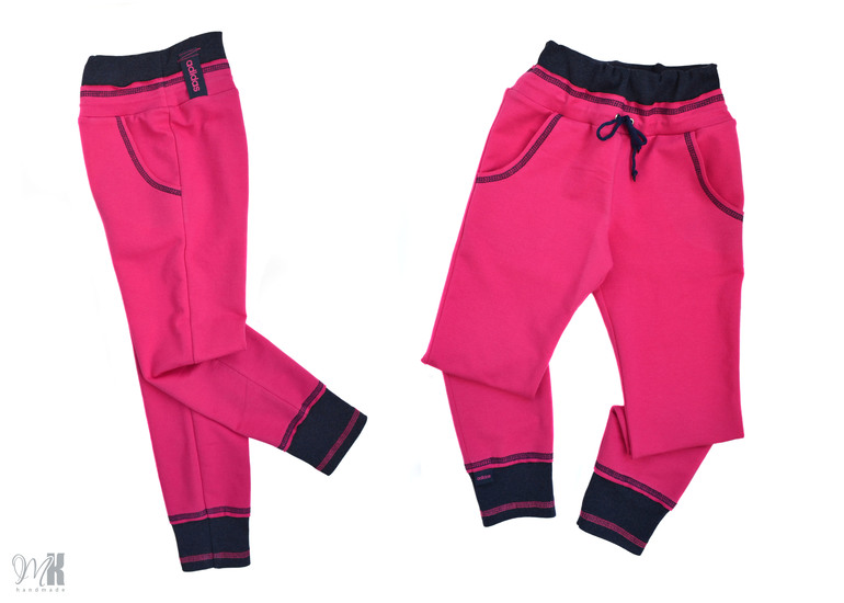Брюки из футера с/л малина и кашкорсе индиго меланж.