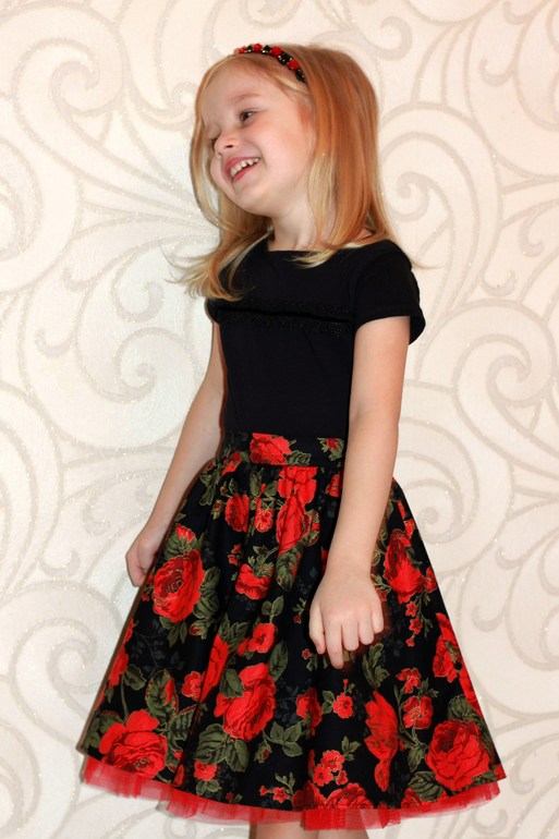 Вообще-то этот отрез я покупала себе на юбку, а Полинке такой же на молочном фоне, но забыла про эту мысль и про ткань, этот отрез попался на глаза быстрее