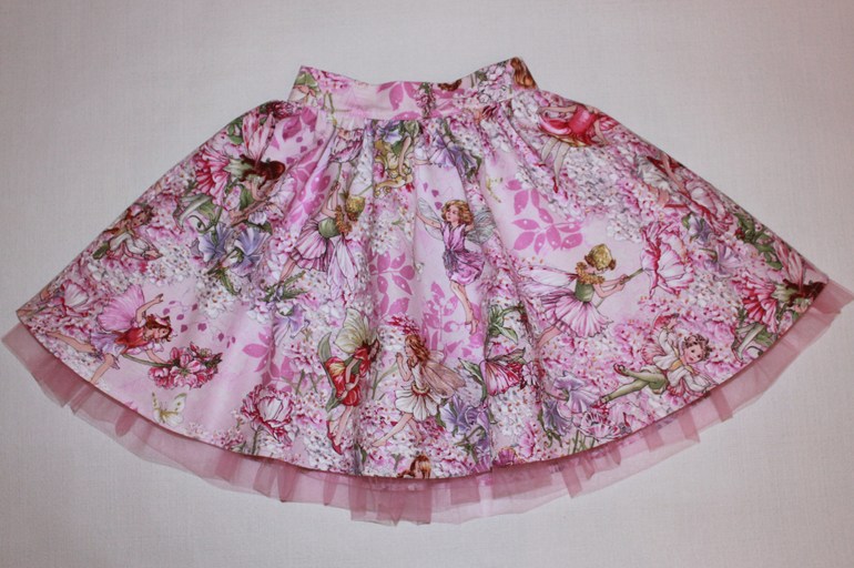 7. И для этой же юной принцессы - нежная юбочка с феями. Полу-солнце со сборкой, по краю так же нашита оборка из фатина.