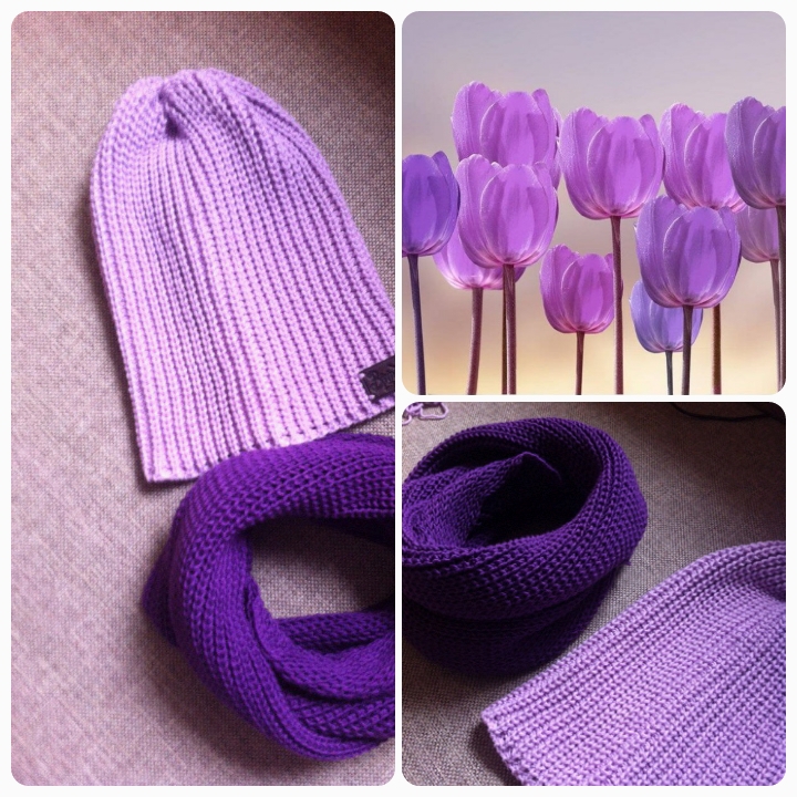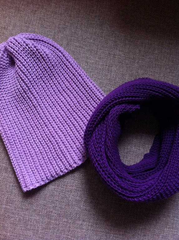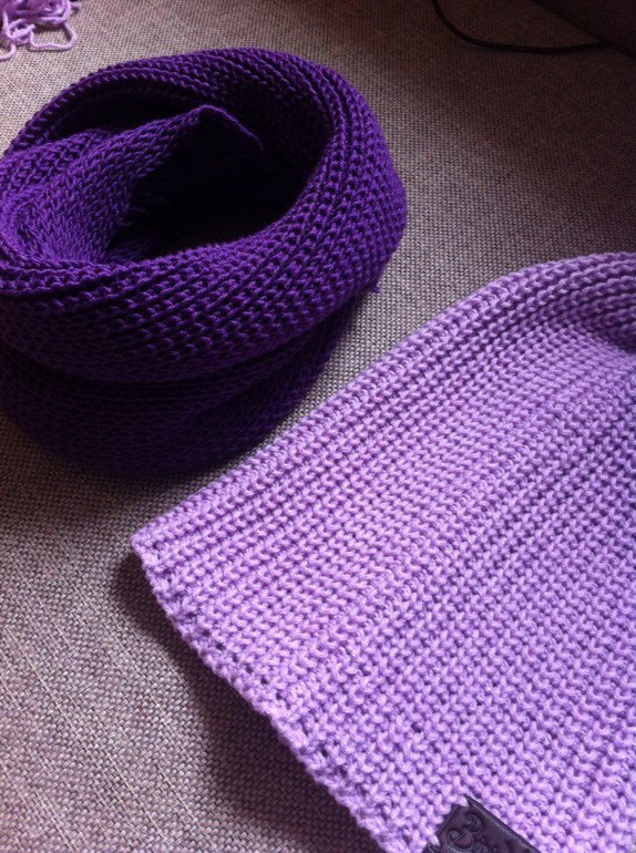 Машинная вязка (РАБОТЫ И СХЕМЫ)Шапка+снуд два оборота модного цвета нежной сирени! Пряжа хлопок 60, акрил 40 , английская резинка