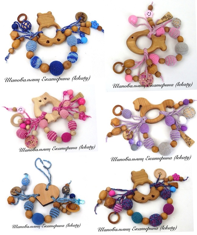 Материалы: деревянные заготовки, хлопковая пряжа, деревянные бусины различной обвязки, от гладких до фактурных, силиконовые бусины, акриловые, деревянные/кокосовые пуговки.