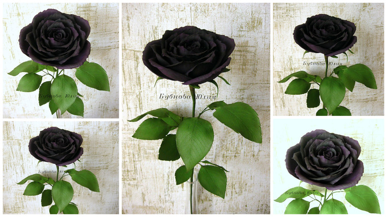 Все лепесточки, листики, стебель розы выполнены вручную.