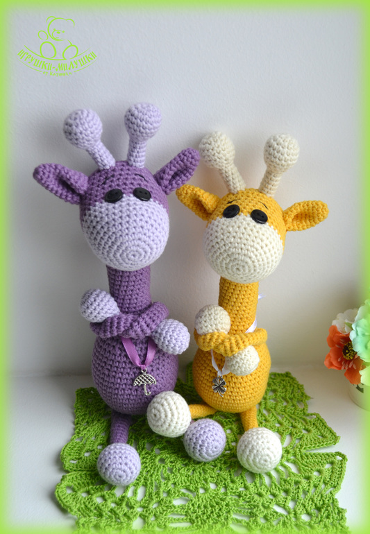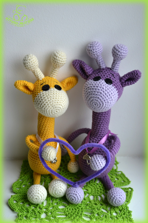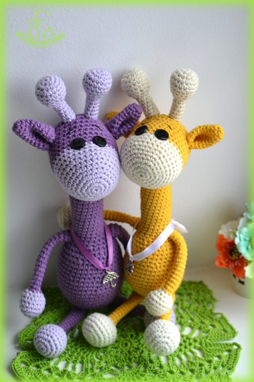 Связаны жирафики крючком из пряжи Джинс и Алара, плотненько набиты синтепоном, глазки-пластиковые пуговки основательно пришиты, т.к.