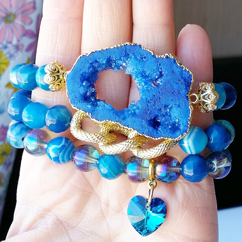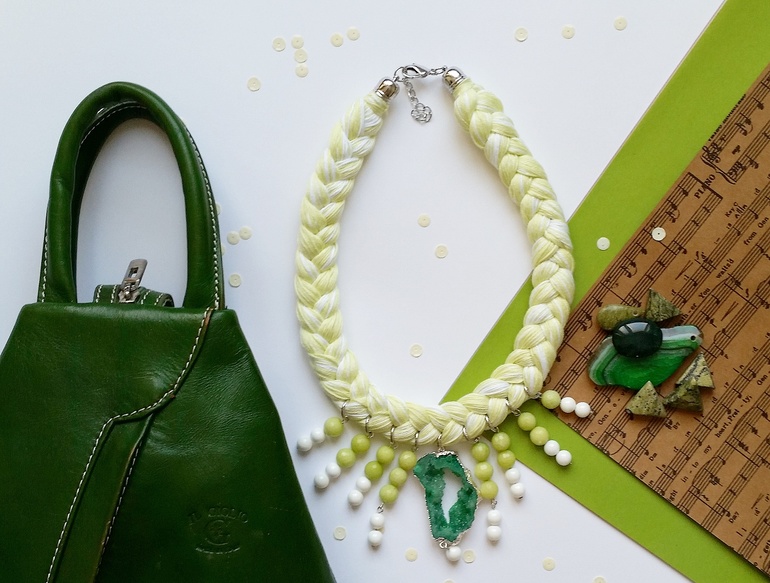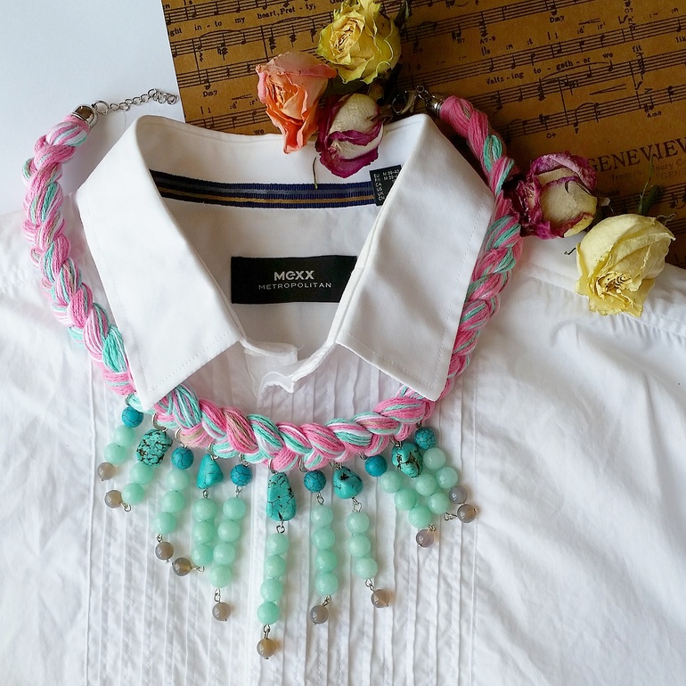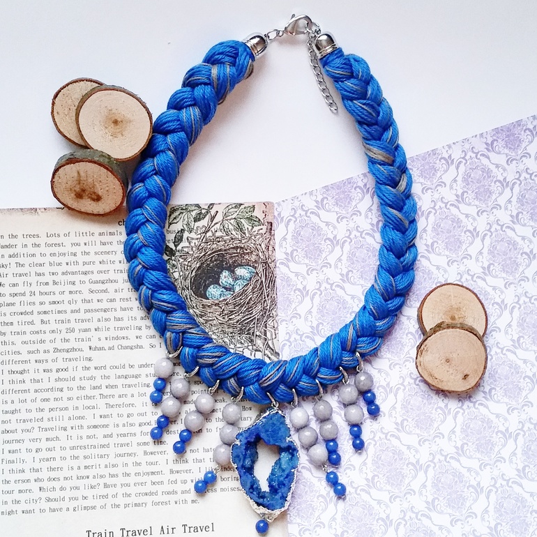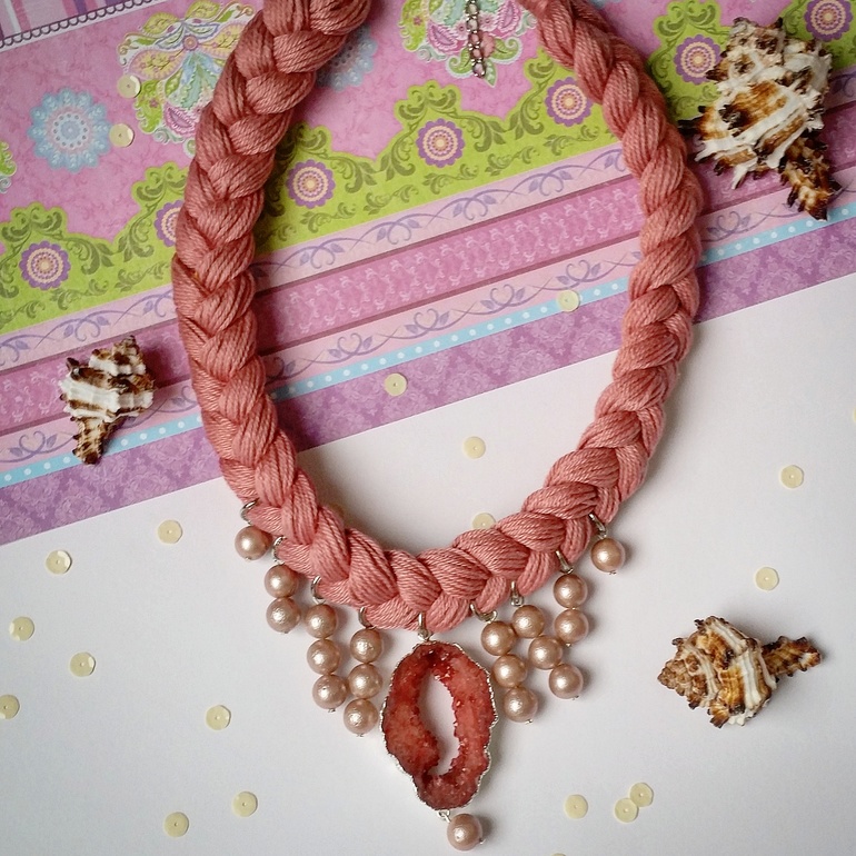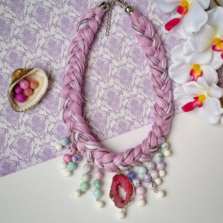 Колье-косы с натуральными камнями, друзами.