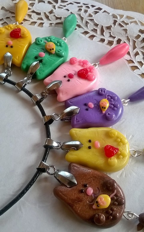 Лепка из пластики (полимерная глина) (ТОЛЬКО ГОТОВЫЕ РАБОТЫ)Подвески-кулоны котики .Форма достаточно простая, чтобы дети смогли делать на мастер-классах.