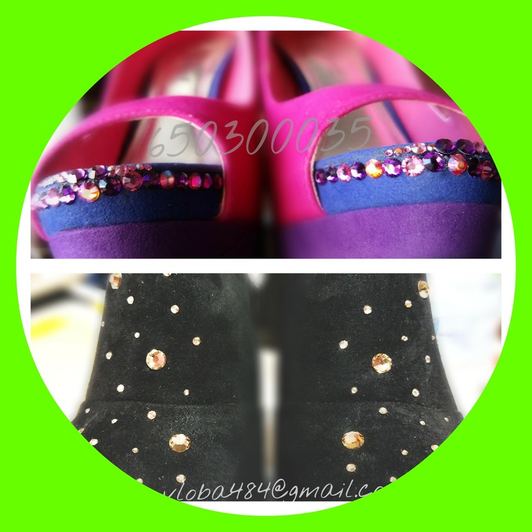 Вот, хвалюсь украшением туфелек (черные) и заделкой стразами потертости (розовые)