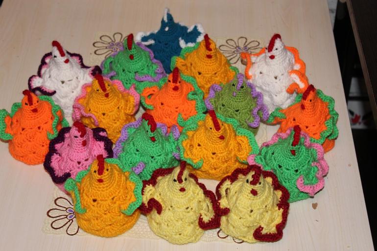 Спешу показать своих пасхальных курочек, готова первая партия, вязала неделю, высота одной около 10см