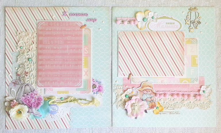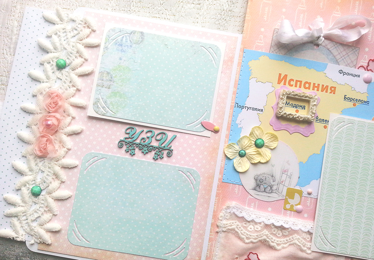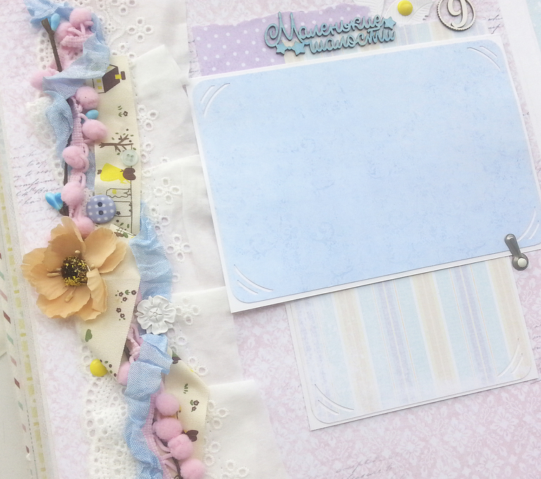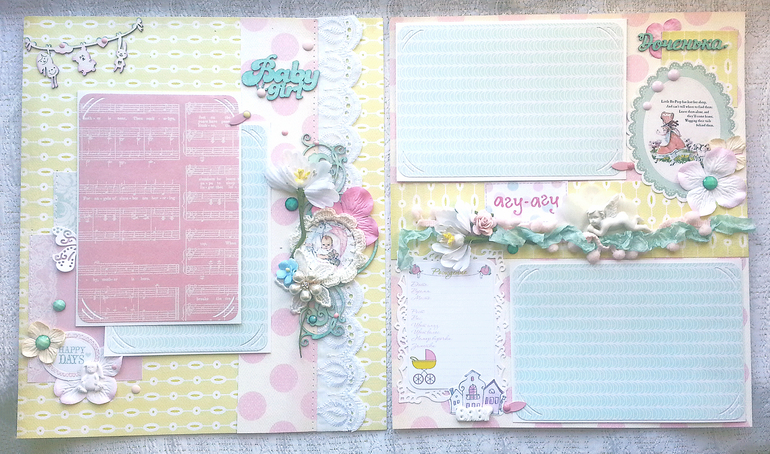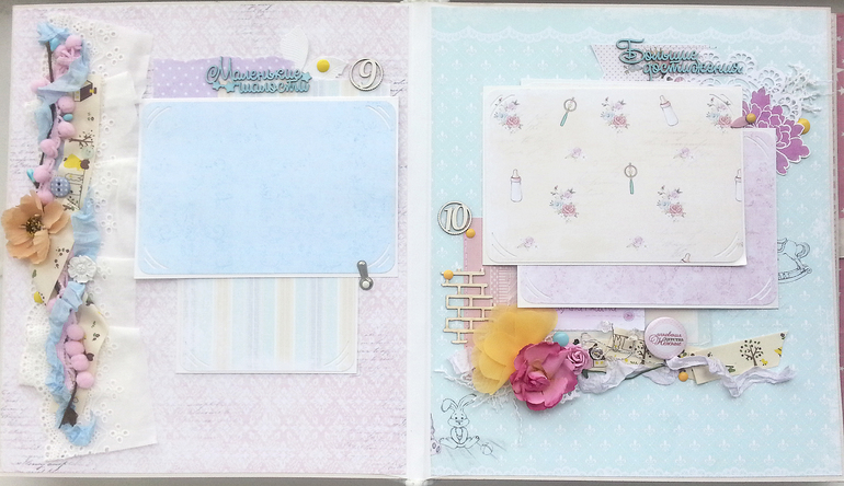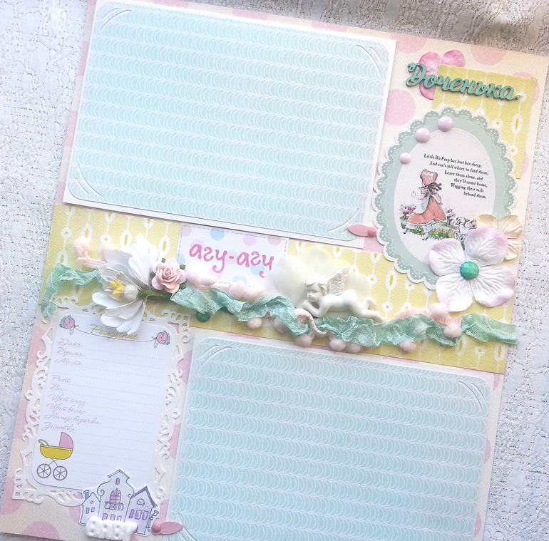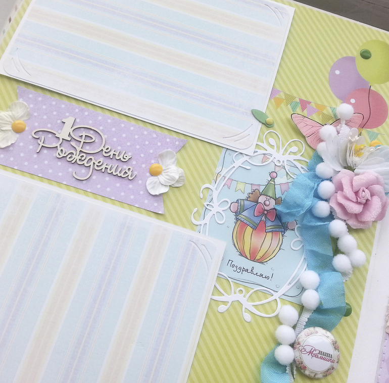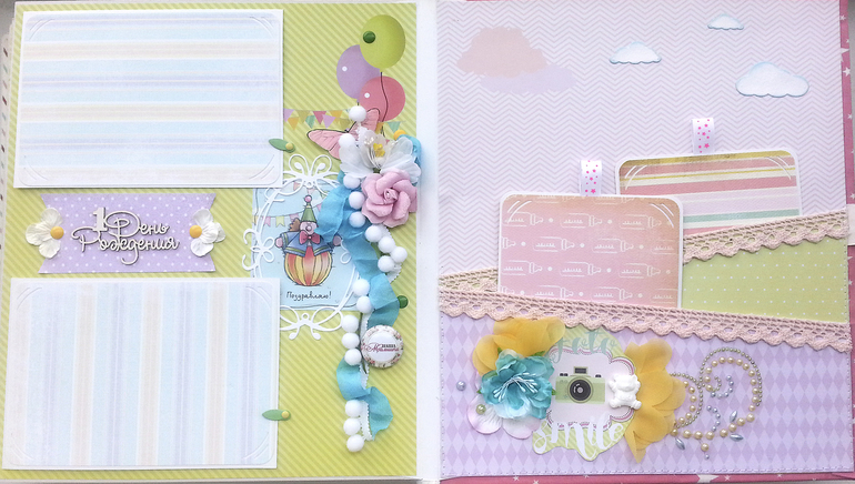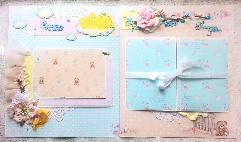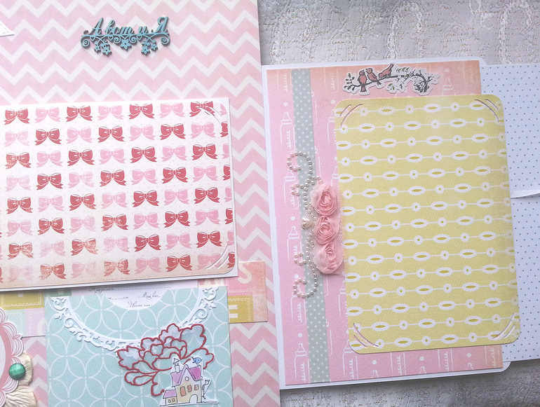 Всем добрый день! Покажу сегодня фотоальбом для девочки на первый год,размер 26х30 см, 8 разворотов (16 страниц), рассчитан на 110-120 фото.. В общем получился большой)).. Естественно с секретиками, табличками и карточками).. Смотрим, фото будет много)..