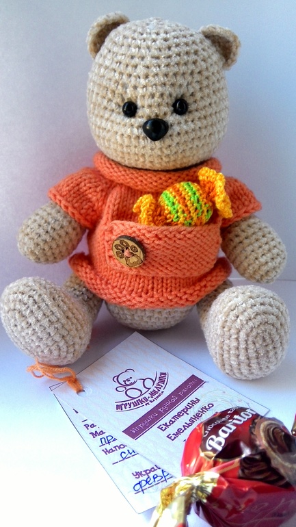 Не удержавшись, сразу же в машине начала раскрывать посылочку) Первое, что увидела - это конфетки! Катюшечка, спасибо тебе огромное!!! Так прияяятно!!! Да, я ужасная сладкоежка! В этом деле мы с Мишутой конкуренты или, скорее, напарники:))) Затем достала распечатку, прочитала мужу стишок) И вот, мой долгожданный Мишута у меня в руках!!!