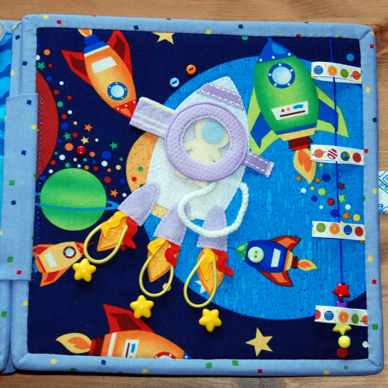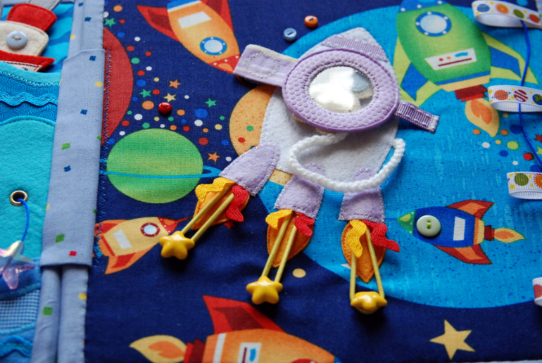 Как всегда, старалась использовать много различных материалов, но в основном, это фетр, флис, хопок, разные ленты, пуговки - бусинки. На странице с ракетой также пригодился фоамин - очень он приятный на ощупь) Каждую страницу описывать не буду, думаю и так всё понятно) Но для наглядности сняла ещё и - https://www.youtube.com/watch?v=VEbTG5mn0CU , может, кому-то пригодится)