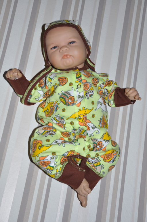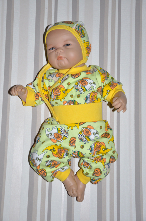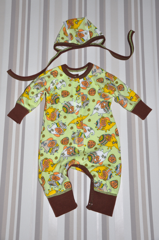 Ткань интерлок. Очень приятная, и очень хорошо показавшая себя в эксплуатации. Вообще покупала ее своим дочкам года два назад. Шила им свитшоты. Всегда считала, что это ткань подходит, как для мальчика, так и для девочки. Но мама одного мальчика))) сказала, что это все таки девчачья расцветочка. Так как на ушах слоников и по полю ткани есть розочки))). Но не смотря на то, что ткань была обозначена как девчачья, мне захотелось ее разбавить именно темным контрастным компаньоном, что я вообщем то и сделала в одном из комплектов. На Ваш суд)))