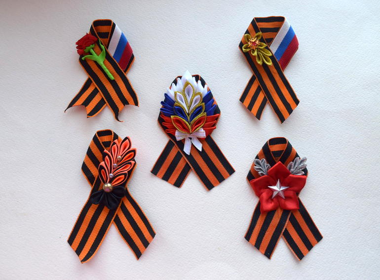 Цветы из ткани и форма. Канзаши. Украшения для волос.Уже не первый год я с подругой делаю в подарок ветеранам нашего города небольшие презентики. Я украшаю ленты, она декорирует платочки. Потом мы вкладываем шоколадку и раздаем нашим героям.