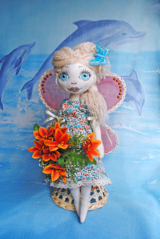 За спиной крылышки из органзы, украшенные кружевом и бусинками. Крылья гнуться.