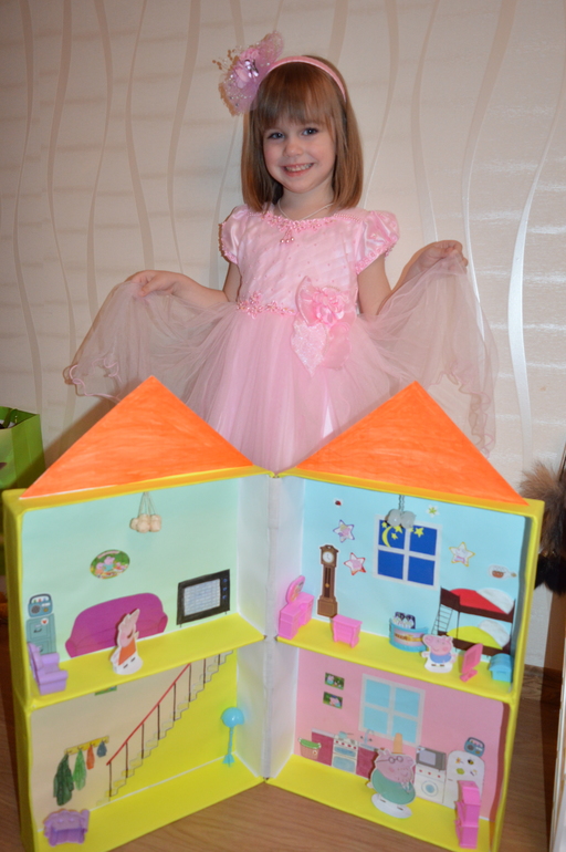 Моя дочь, Стася, очень любит мультфильмы и про свинку Пеппу, один из самых любимых. И вот увидев рекламу домиков для Пеппы, она стала просить купить ей такой, но я уговорила ее сделать его. Два дня обдумывала какая коробка лучше подойдет, поискала в интернете, затем неделю вырезали и клеили с дочкой по вечерам, и вот результат. Надеюсь наш опыт окажется кому-то полезным.Под катом более 5-ти фото.