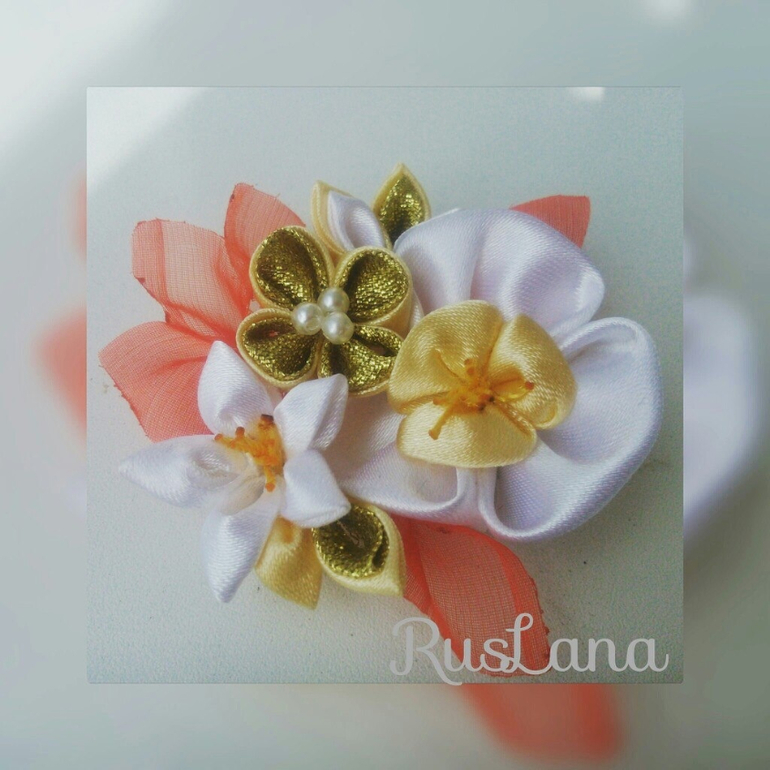 Цветы из ткани и форма. Канзаши. Украшения для волос.