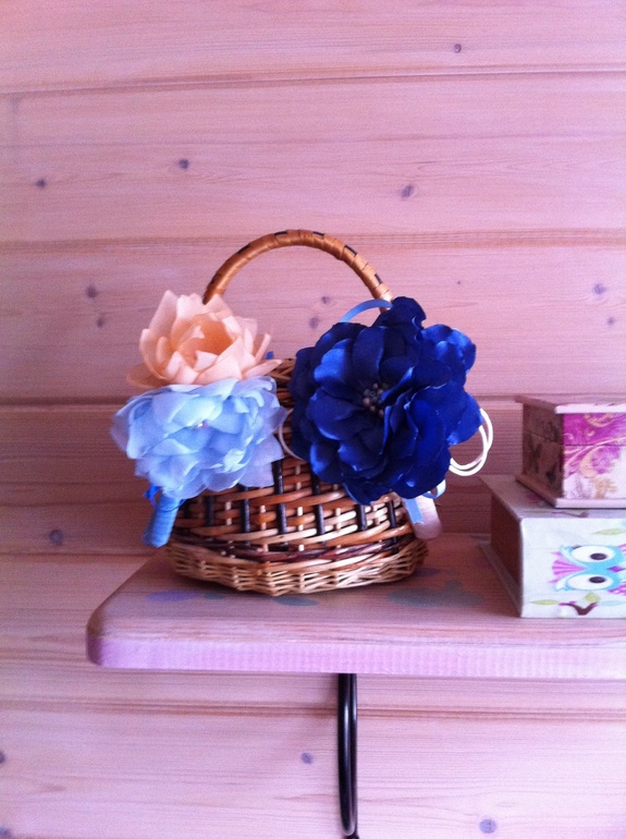 А это ободки из ткани, для старшей дочки - с темно синим цветком, для младшенькой - нежные персиковый и голубой цветочки)