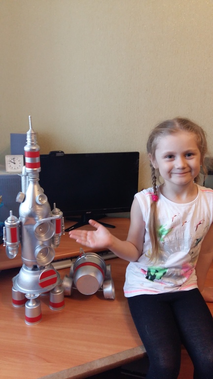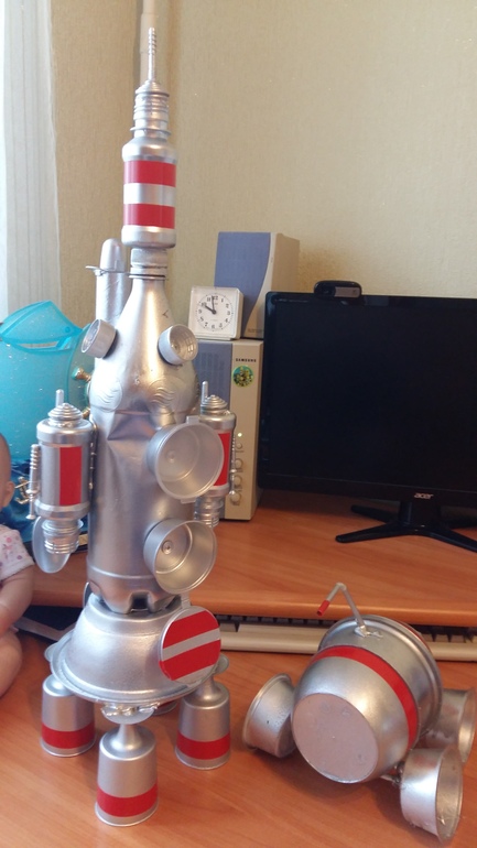 Поделки с детками.Задали нам задание на выходные... и вот что из этого получилось.. Старший почти все сделал сам... младшая собрала все одноразовые емкости, даже колпачек от пустышки пошел в дело...