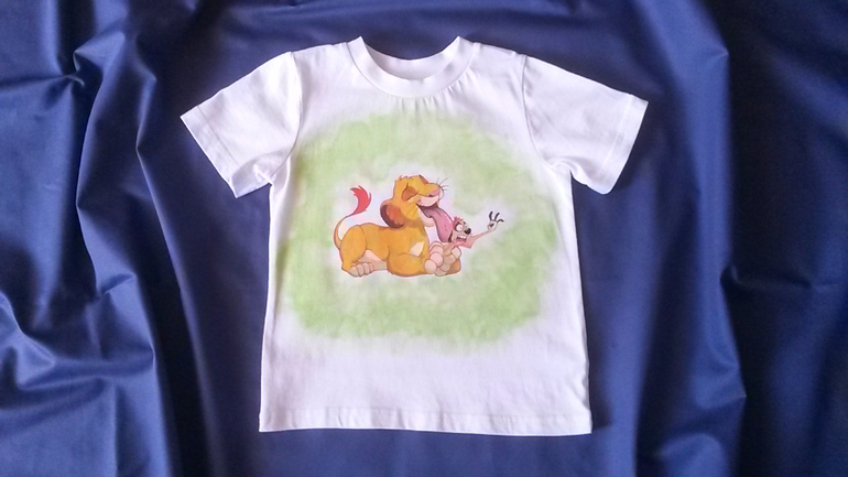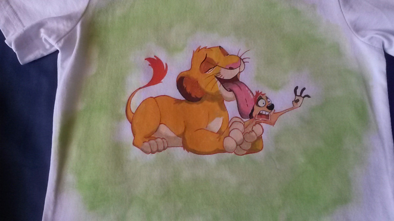 Роспись по ткани, батикНаверно, нет мальчишки, который после просмотра этого Диснеевского мультика, не захотел бы подружиться с Симбой и его чумовыми друзьями :)