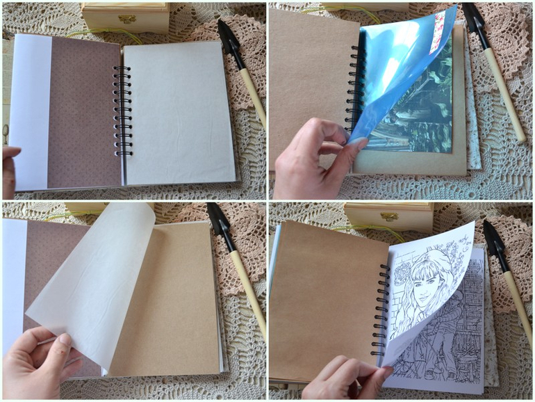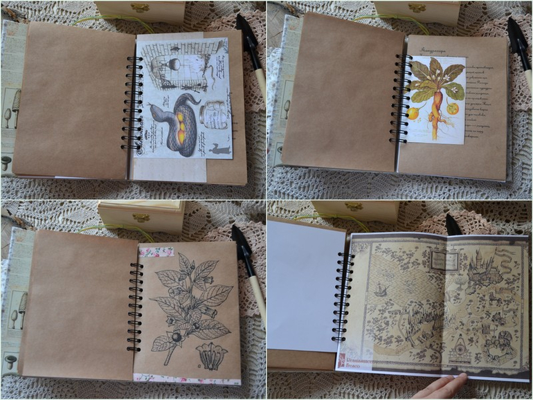 Здесь есть и плотные листы сверху калька- для того чтобы хранить гербарий,чистые листы для своих рецептов и листы раскрасок!