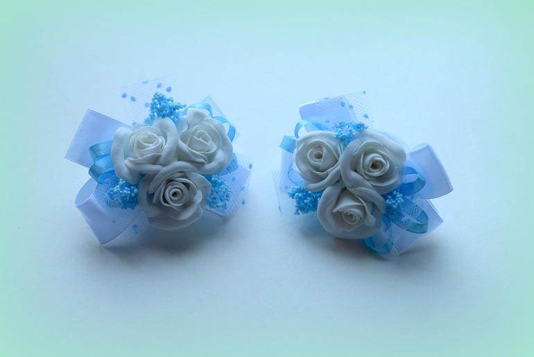 А можно спросить, нежно голубые резиночки с розочками, розы из какого материала, они такие замечательные.