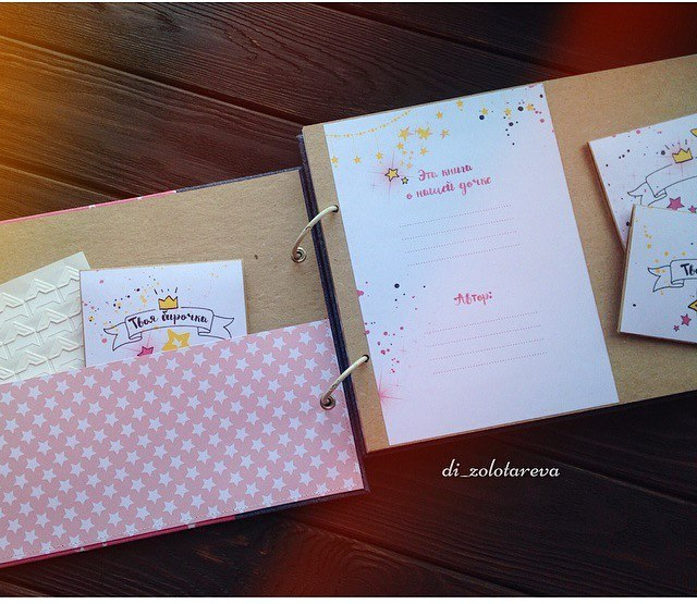 СкрапбукингБэби бук, а4. Печатные листы для записи самых важных моментов первого года жизни малышки. Конвертики, кармашки, карточки для пожеланий. На разъемных кольцах