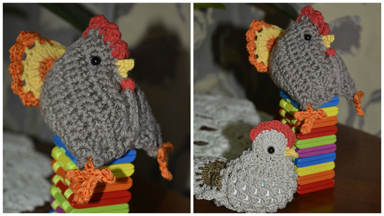 Вязание крючком (РАБОТЫ И СХЕМЫ)К моим курочкам по настоятельной просьбе сынульки связался петух. Он думает что петух считает яйца в курятнике :)