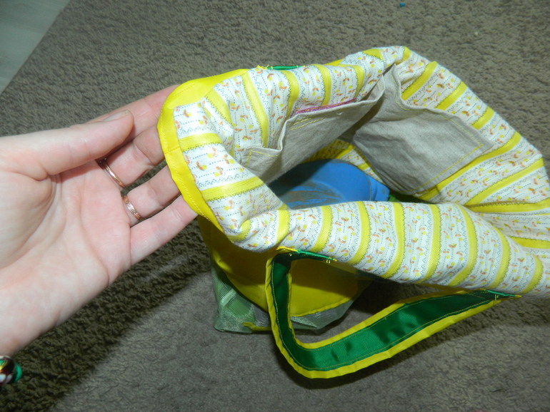 Швея я еще "тааааааа" мастерица :) так что не судите строго. Сетка снизу была куплена в строит магазине как маскитная - зеленого цвета. Внутри подклад - хлопок