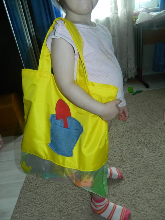 Песочек хотя еще "свежий" не привезли, и детки копаются в прошлогодней песокогрязи, но все же весенние куличи печь необходимо! Покупала еще в том году специально для такой сумки плащевку - зачем взяла желтую ---не знаю... и вот что у меня вышло------