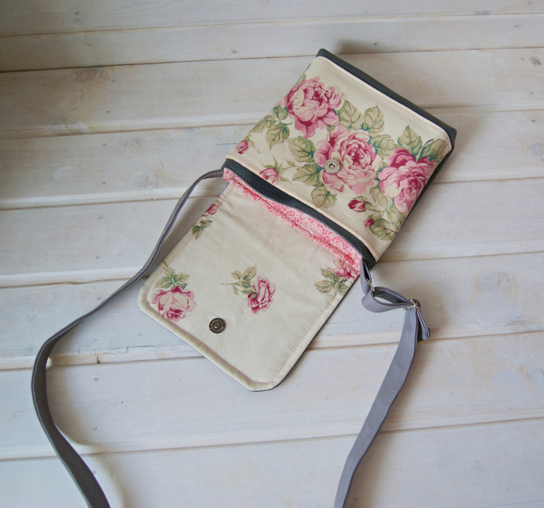 И последняя сумочка-малышка и основы более тёмного серого цвета в сочетании с огромными розами на внешнем кармане