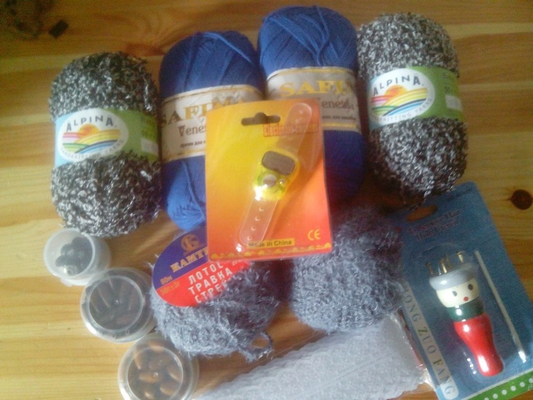 Серенькая пряжа, оба мотка новые. С одного сын успел бумажку содрать))) и всячески пытался закинуть контейнер из киндер сюрприза)))) надеюсь, не удалось у него?)))
