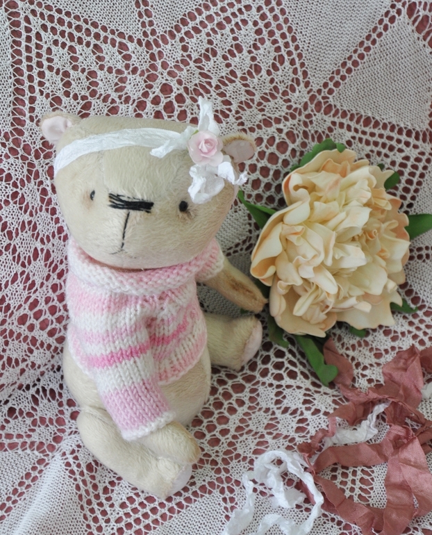 Тедди: мишки и их друзья.из мягкого плюшика. одета в съемный свитерок. на шплинтовых креплениях. когда закончились все материалы, но творить мишек очень хочется, рождаются вот такие малыши из простых материалов... очень мягкая девочка.
