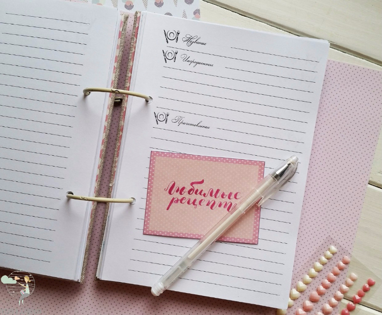 Внутри примерно 100 линованных листочков и 4 разделителя, куда можно вписать название раздела.