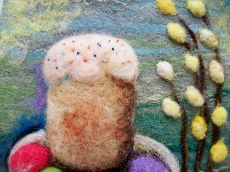 Фелтинг (валяние шерсти)Вот решила сделать картину к Пасхе, не совсем обычную, объемную.