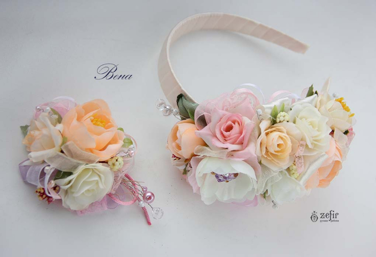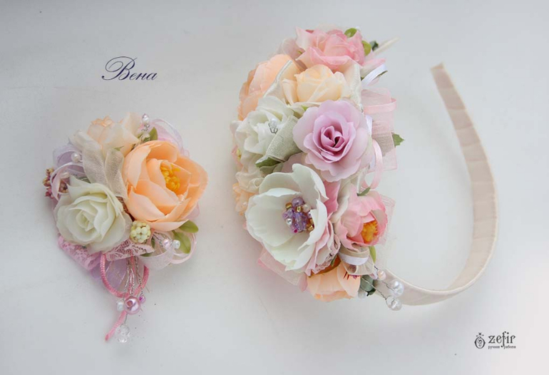 Цветы из ткани и форма. Канзаши. Украшения для волос.именно так я вижу Вену весной, утром... в пастельных тонах...