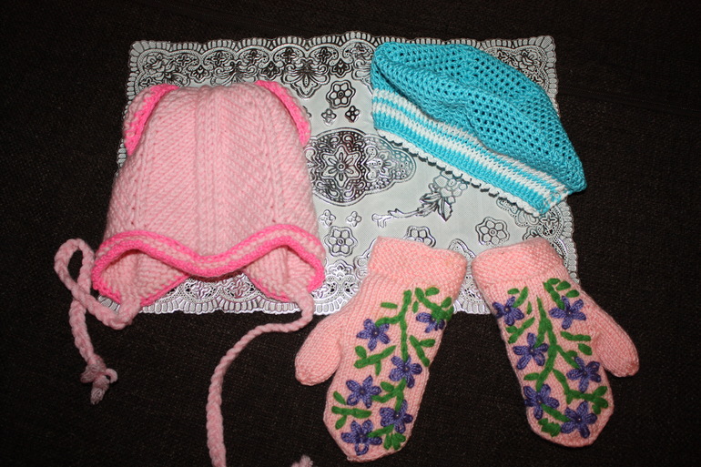Шапочки и варежки нам на вырост ))) И красивую салфеточку.