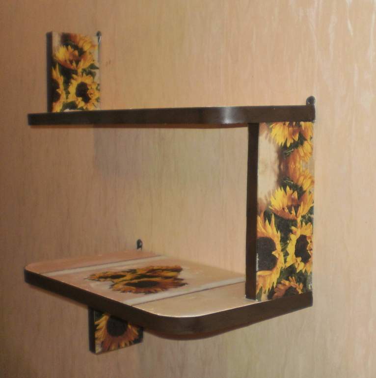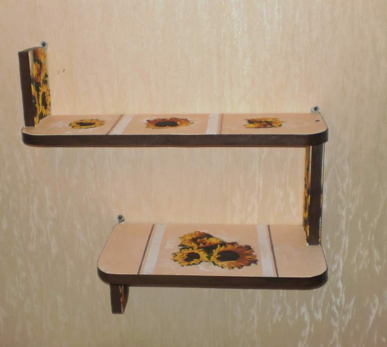 Но вот сделал мне на кухню муж полочку для всякой мелочи. Давно я его об этом просила. То, что он "наваял", функцианально меня устраивало. Можно поставить на нее хлебницу и разные там другие мелочи, можно даже вазу с цветами пристроить. Но с эститической стороны... Корявенькая она получилась какая-то.