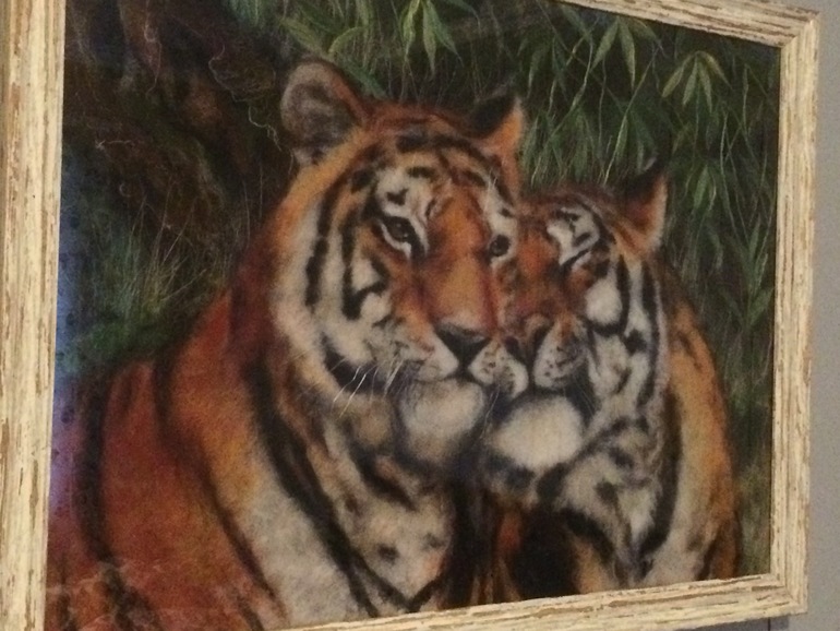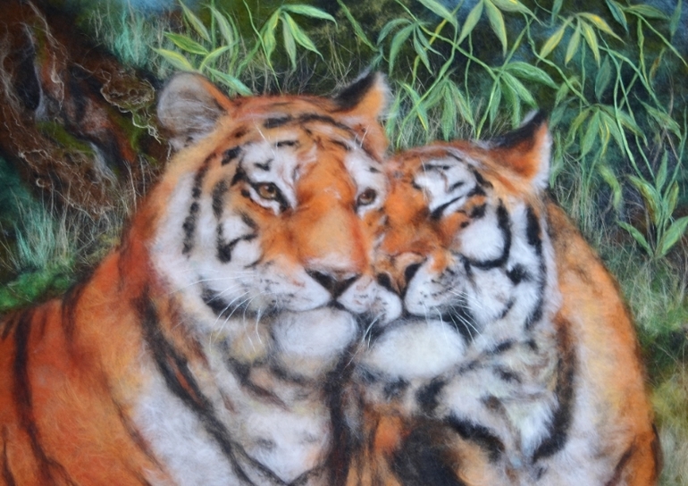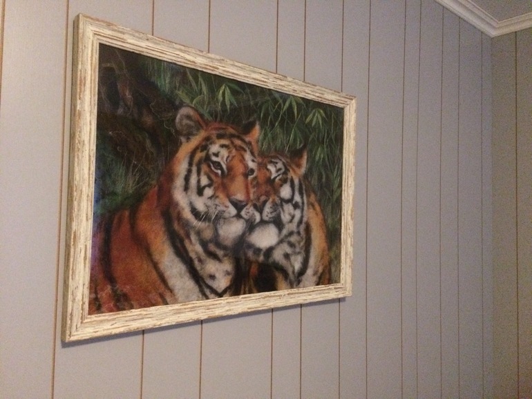 Я ещё сомневалась и сначала хотела заказать львов, но решила, что о тиграх муж говорит больше и не прогадала, так как уже после заказа, совершенно случайно, узнала, что у мужа в детстве было любим занятием, приходя к одной из тётушек в гости, рассматривать открытку на которой был изображён тигр...