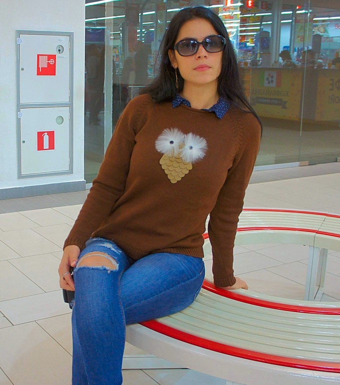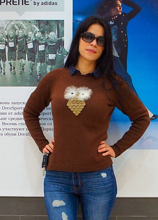 Машинная вязка (РАБОТЫ И СХЕМЫ)Вот сегодня пошла выгуливать свою сову))) связала себе кофточку из мериноса Италия. сова сделана из кожи и меха енота. Очень я скажу уютно и тепло в этой кофте, на улице при +10 мне было тепло а в помещении в Т.Ц ни капли не жарко( прям комфортно и уютно)