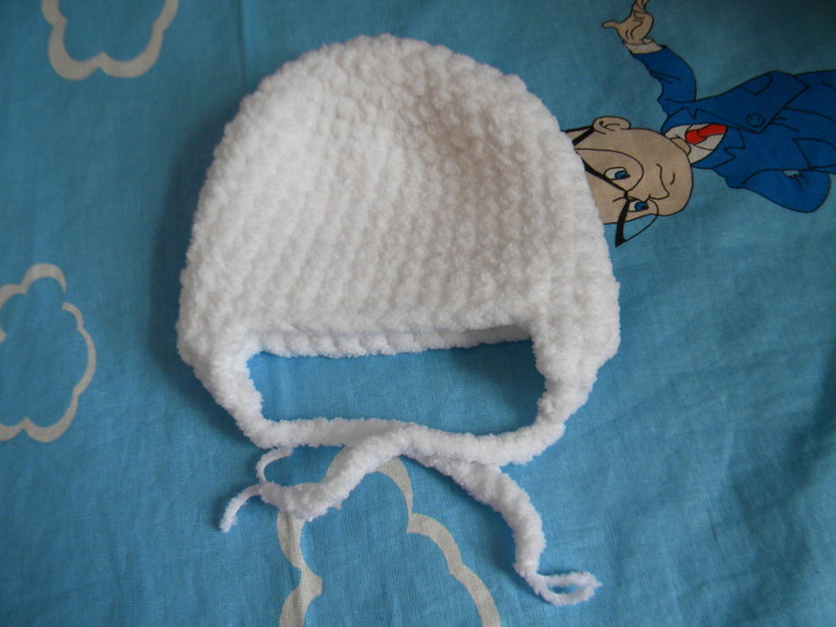 И шапочку для выписки связала (думаю ушки еще добавить). Такая мягенькая получилась, правда намучилась пока вязала))):