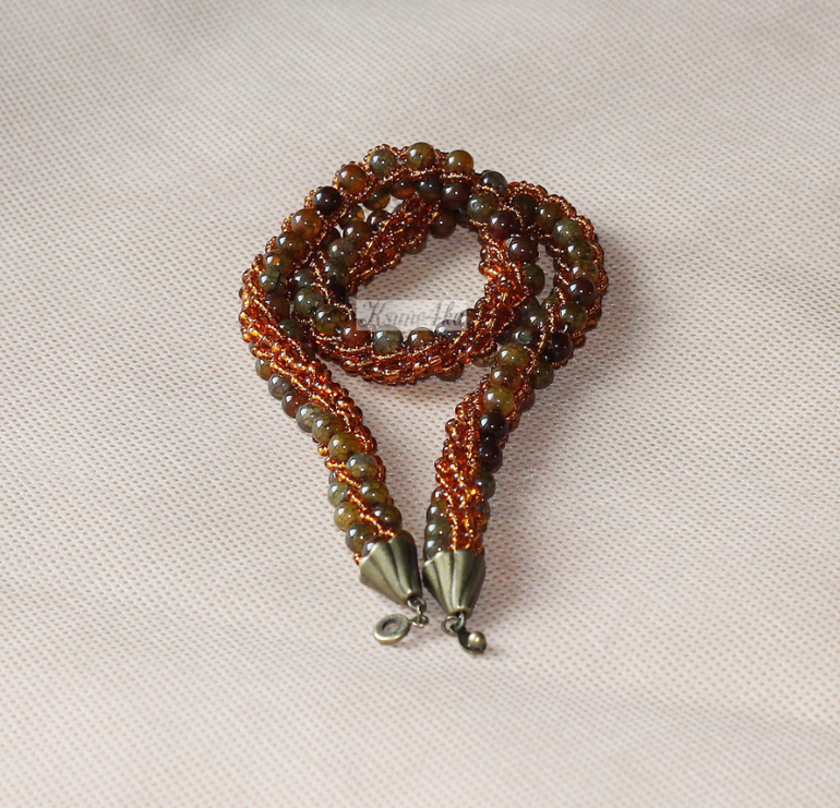 Жгут "Агатовое драже" выполнен из бусин агата "Вены дракона", чешского бисера и фурнитуры под бронзу.